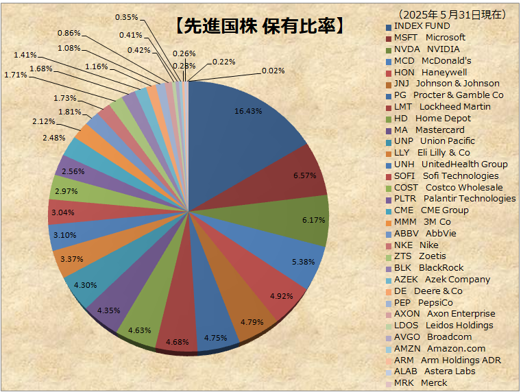 当ポートフォリオは自らが管理する資産(主に証券)を掲載しており、家計や家族の預金口座等は一切含みません。そのため、ポートフォリオ全体のリスクは幾分高めに設定しています。