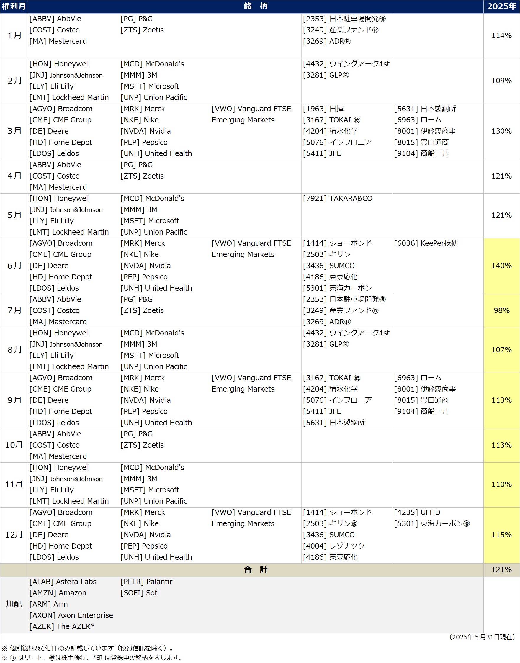 - 株価成長と配当の両面でバランスが取れた銘柄をコア銘柄に