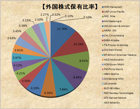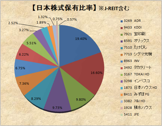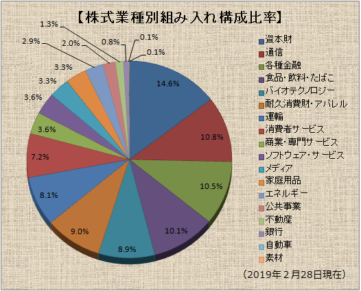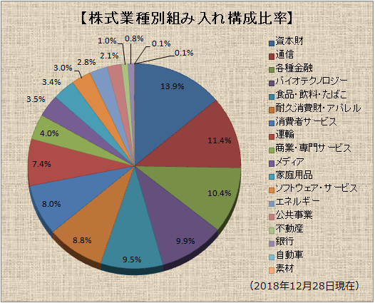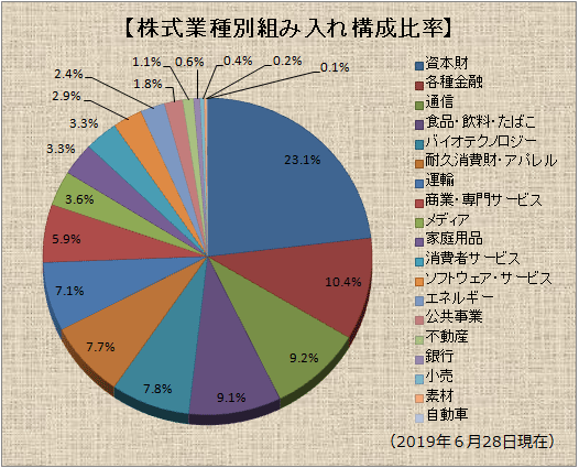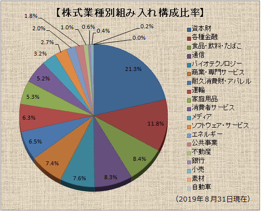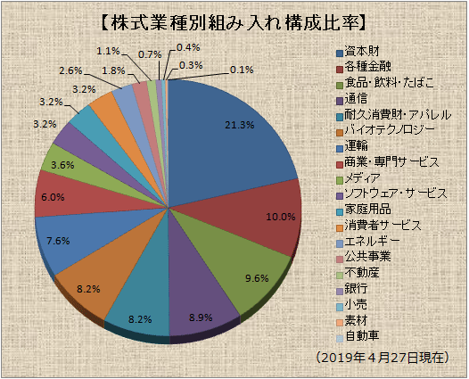 株式の業種別の構成比率は、資本財セクターが突出していますが、資本財が大好物なのでついつい偏りがちです。株式選定時に多少参考にしてなるべく分散を心掛けています。