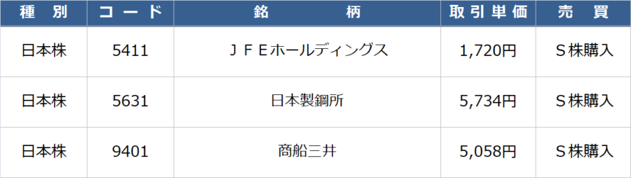 懐かしさと愛着から、最近新たにS株で投資を開始したのは、JFEホールディングス(5411)、日本製鋼所(5631)、商船三井(9104)の3銘柄。いずれも投資を始めた初期に保有していた銘柄です。コツコツ買い増ししていく予定です。