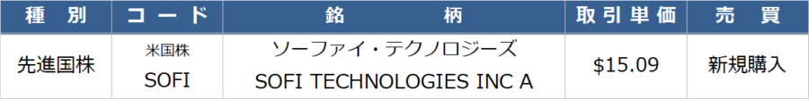 デジタル金融サービスを展開するソーファイ・テクノロジーズ(SOFI)を新規購入しました。