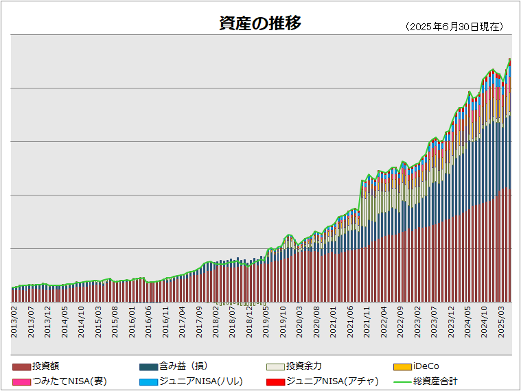 そんなわけで、まずは夏休みをゆっくり過ごし、リフレッシュして後半戦を迎えるべく、2025年6月の資産運用状況を振り返ります。今回もどうかお付き合いください。