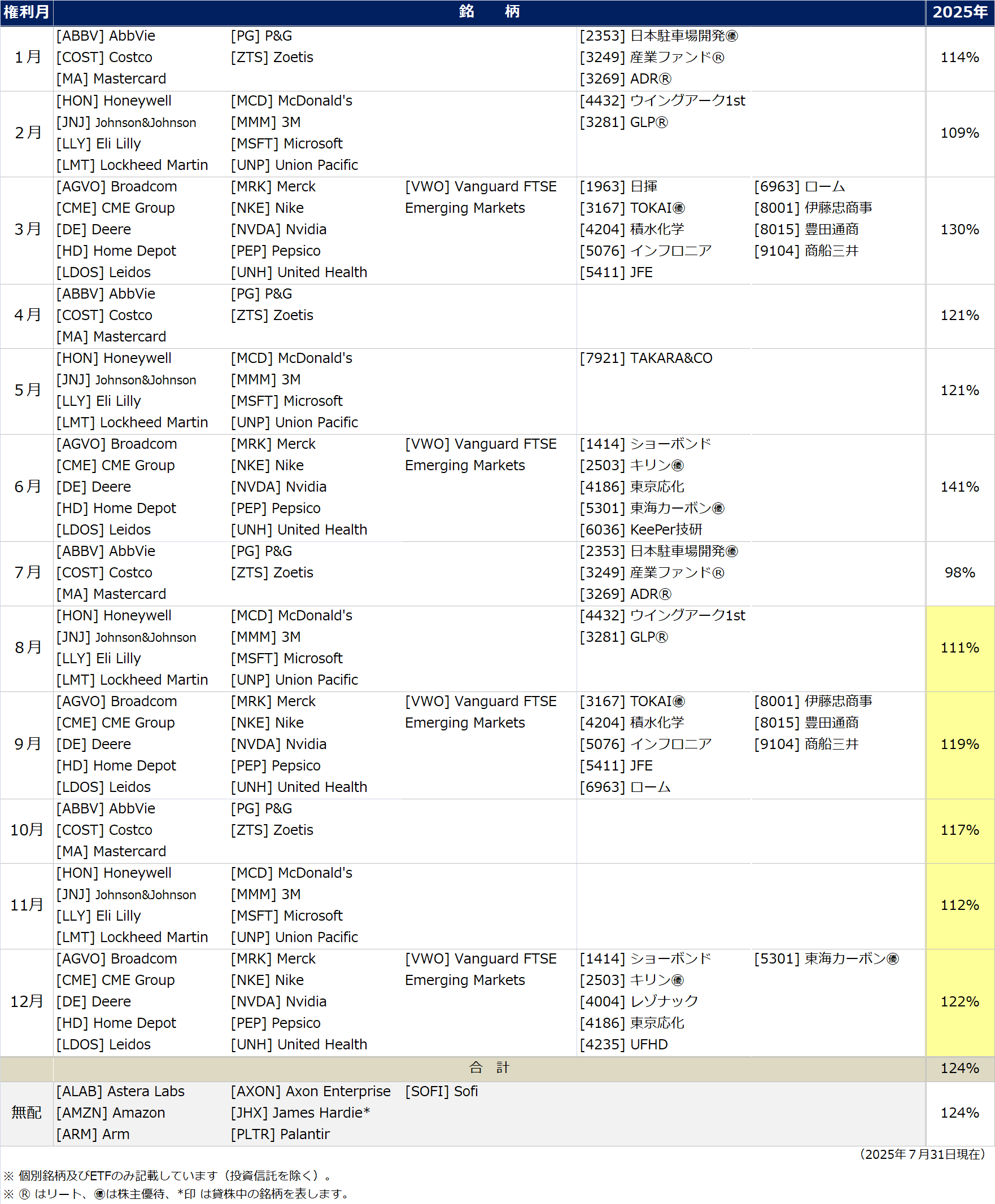年間の受取配当金額は前年比+25%が目標ですが、現在の見通しは+24%。残り1ポイント、どうやら今年の目標の1つを射程圏に捉えたようです。残り5カ月、どこまで伸ばせるか楽しみです。