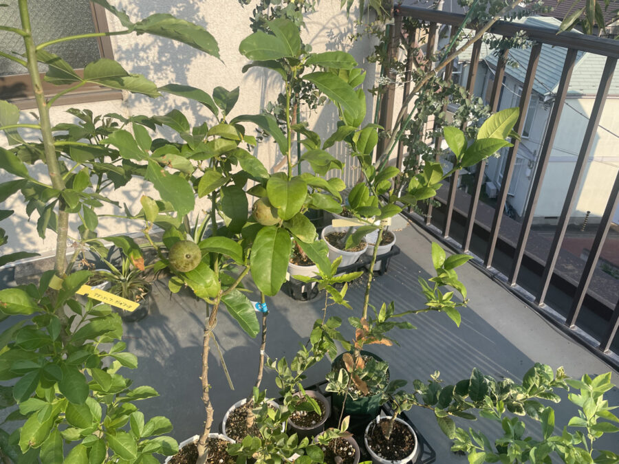 現在、育てているレモンの苗木は、昨年から購入した3年生の璃の香と、フリマサイトで譲っていただいたピンクレモネード。そして今年購入した2年生のマイヤーレモンとリスボンの4本。