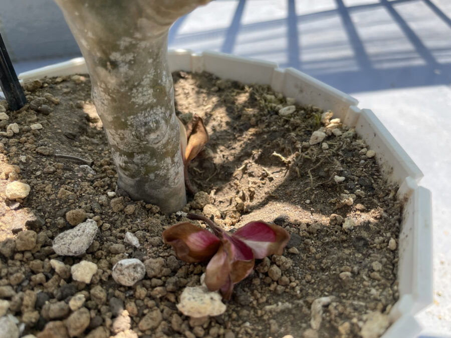 朝、枝にシワが入りぶよってて、「うわっ根腐れ⁉︎」と戦慄が走ったが、幹は固いので水不足の方に賭け、たっぷり灌水。