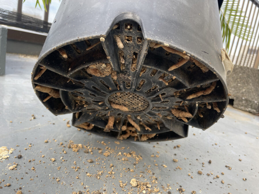 それもそのはず、鉢を傾けると鉢底から根が飛び出していましたから。そりゃあ簡単には抜けませんよね。やはりもっと早く植え替えておくべきだったようです。