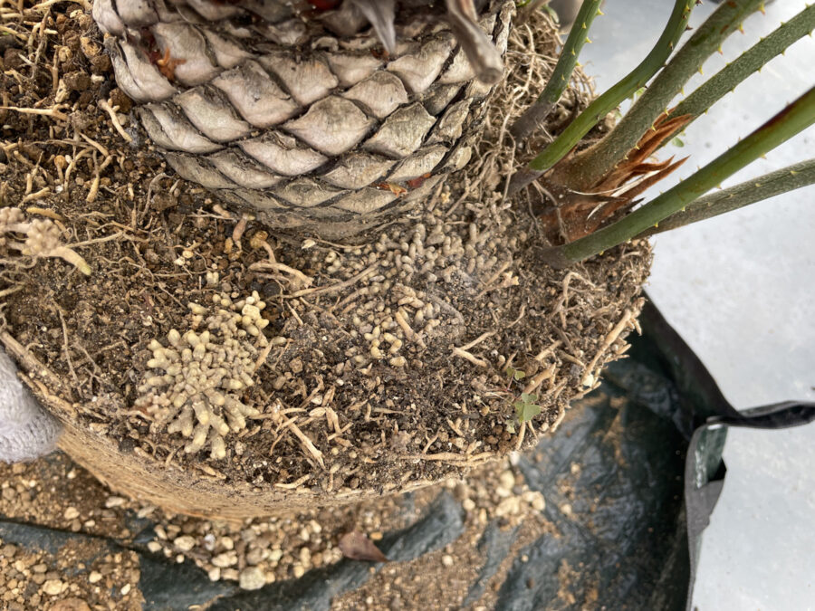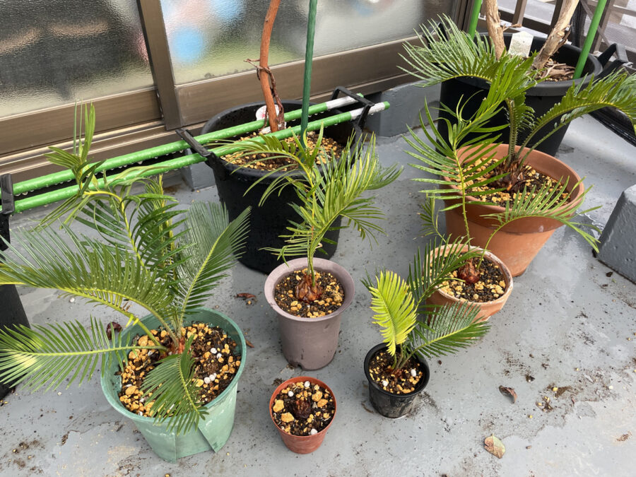 春先の新葉を伸ばす時期こそ見どころがあるものの、その後はあまり変化がなく、面白みに欠けると思っていたソテツですが、この機会に管理方法を見直しし、今後はしっかり幹を太らせることを楽しみに育てていこうと思います。
