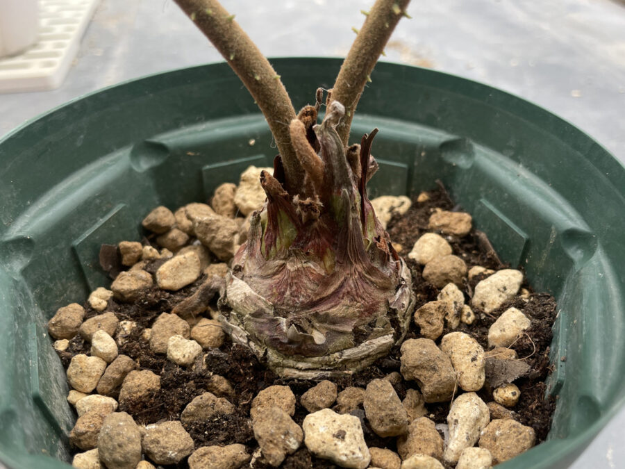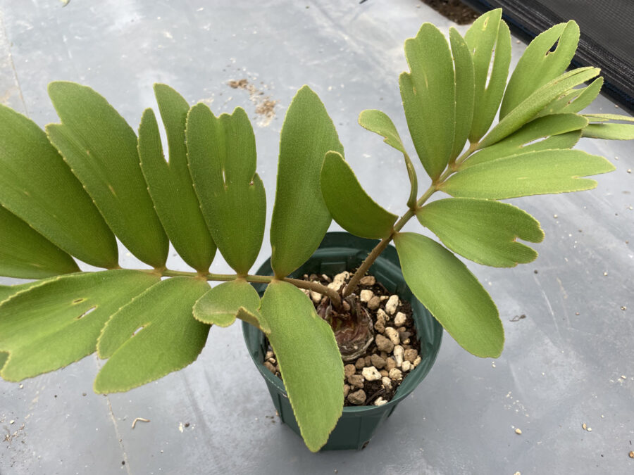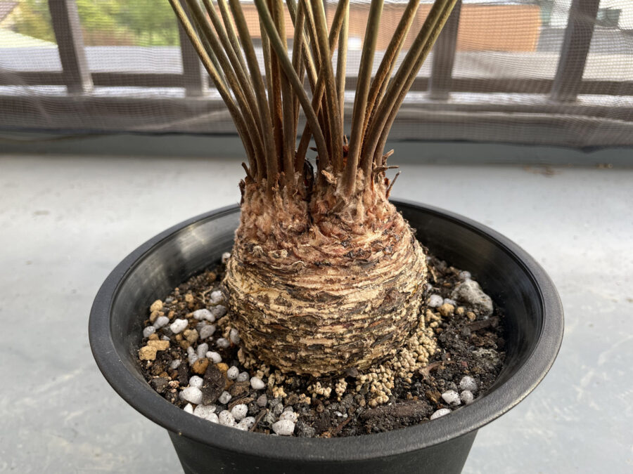 このフロリダーナ(フロリダソテツ)、2頭に分頭していますがイモの頭頂部に集まっているのでイモが本当にきれい。一目惚れしてしまいました。