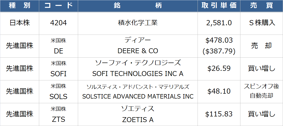11月は以下の銘柄を売買しました。