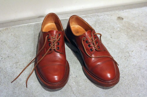 誕生日にプレゼントされたTricker’s(トリッカーズ)のキャップトゥカントリーシューズ、久しぶりの新顔に多少贔屓目に頻度多く履いています。オンでもオフでもスーツスタイルを除けばほぼ何にでも合うし、おっかなびっくり履く靴でもないので、とにかくいつでもどこへでも。