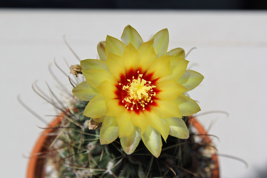 日焼けや日照不足などでお世辞にも見た目がいいとは言えないサボテンたち。見た目は不格好でも(不格好にしたのは自分ですが・・・)、花の美しさに触れるたび、再び愛着が湧いてきます。他にもたくさん咲いていたようですが、平日に咲き終わってしまっていたようで・・・残念。