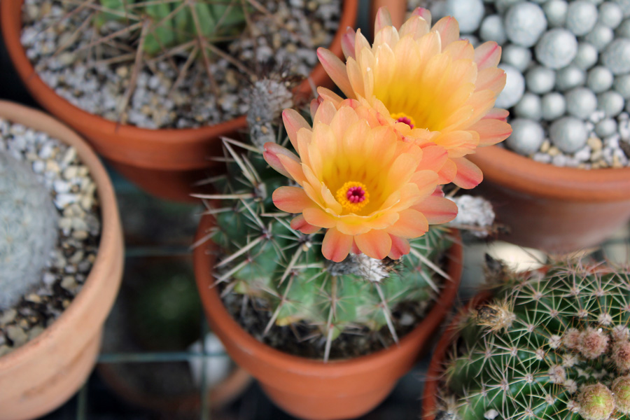 ダメオーナーが育てる不憫なサボテンたち。日焼けはするわ、変形するわ、とサボテンたちにはいくら謝っても足りませんが、たとえ親がダメダメでも、子どもは健気にしっかり花を咲かせてくれます。