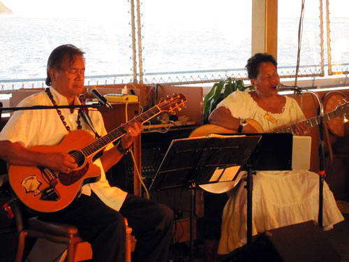 ハワイアンミュージックの生演奏を聞きながらの美味しい食事。
