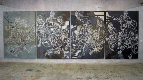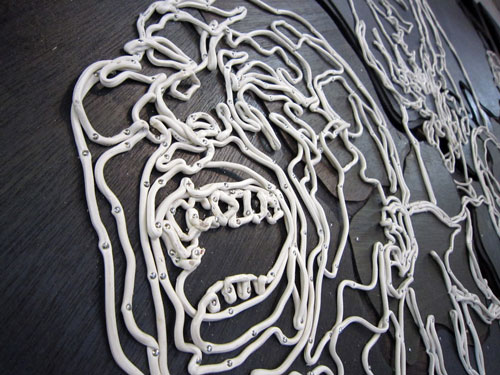 電気コードの持つ質感を巧みに使い素晴らしい作品で、しばし感動。