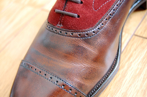 これはビーワックスの特性なのか、単にコルドの色が靴の色より濃いせいなのか、