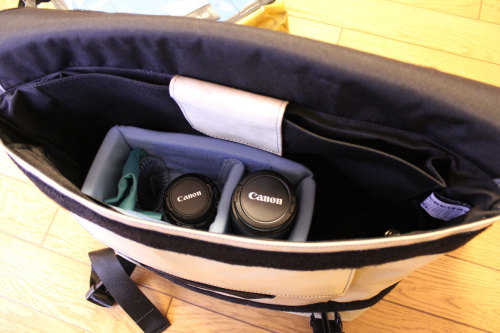 エツミだったかハクバだったか、のインナークッションを中に入れて即席カメラバッグの完成。
