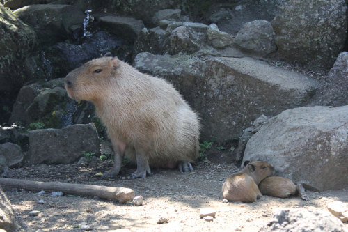 大好きなカピバラさんには1週間前に赤ちゃんが生まれたばかりだそうで、
