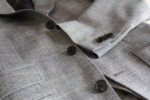 黒のブーツとの合わせが頭にあったので、ここは敢えて水牛ボタンで。