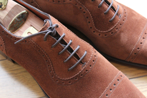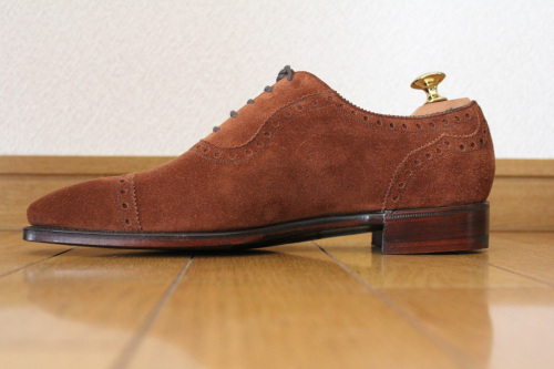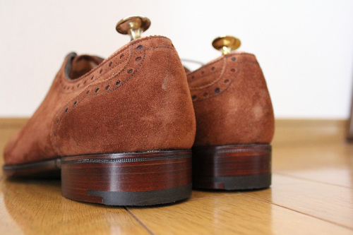 オフな印象になりがちなスエード靴をラストで矯正する感じ(?)。