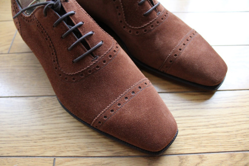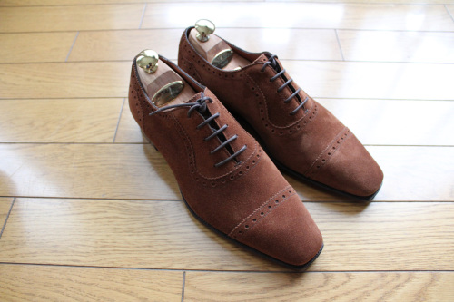 ゴールドスエードなども魅力的ですが、スーツに合わせる靴ならこのくらいの方が