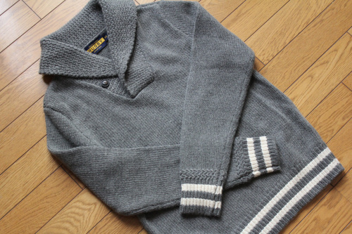 グレーでショールカラー、カレッジライクなホワイトラインなど、