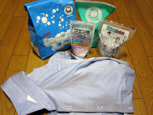ついでにシャツをやさしく押し洗いしてからしっかり真水ですすぐ。 - クエン酸にくぐらせる