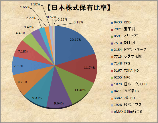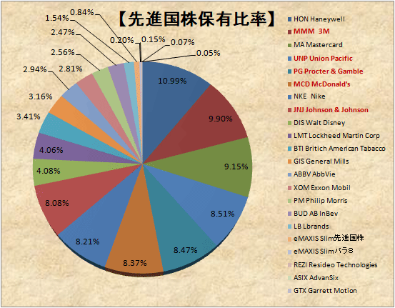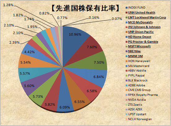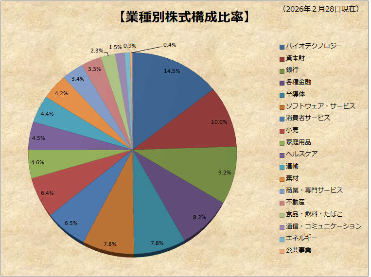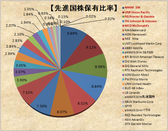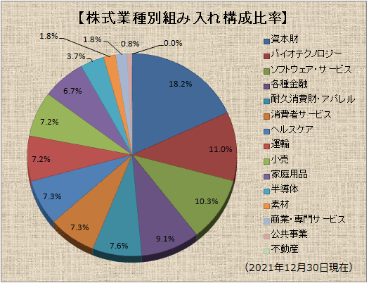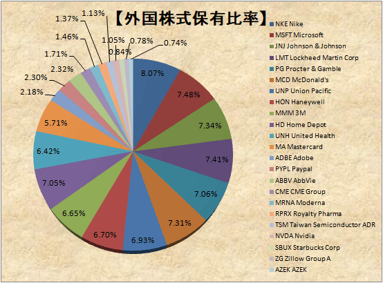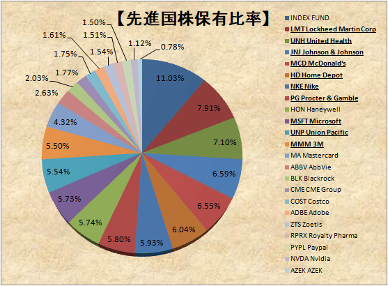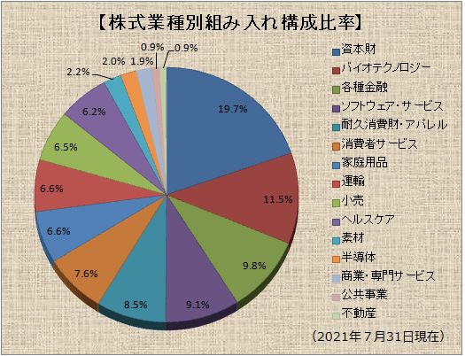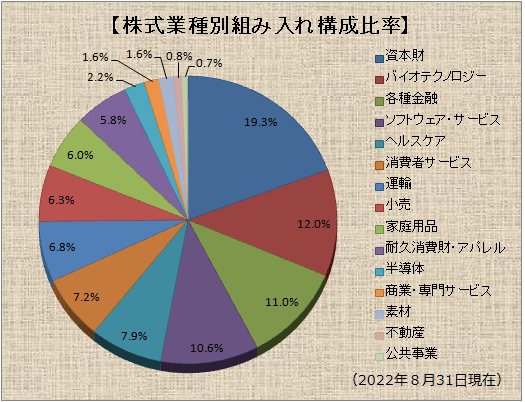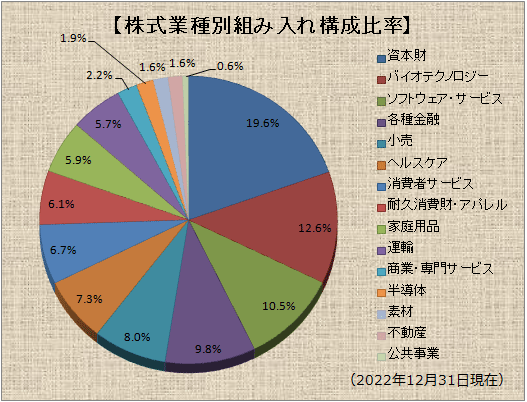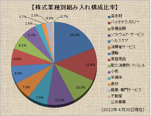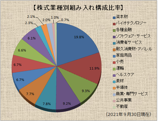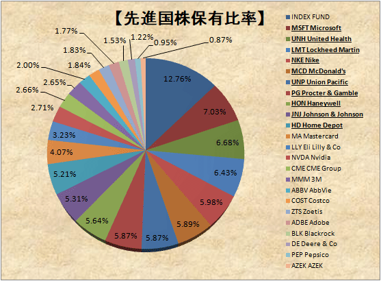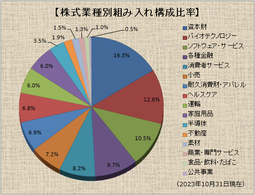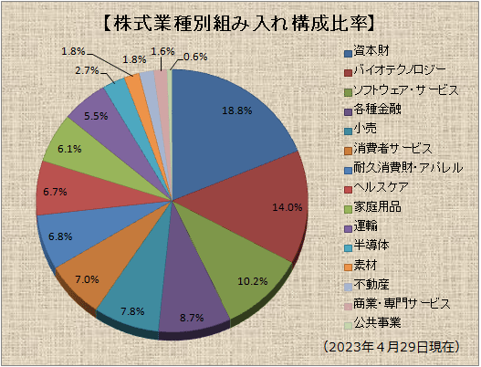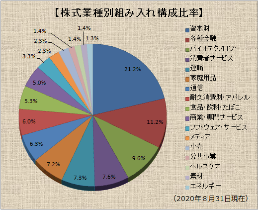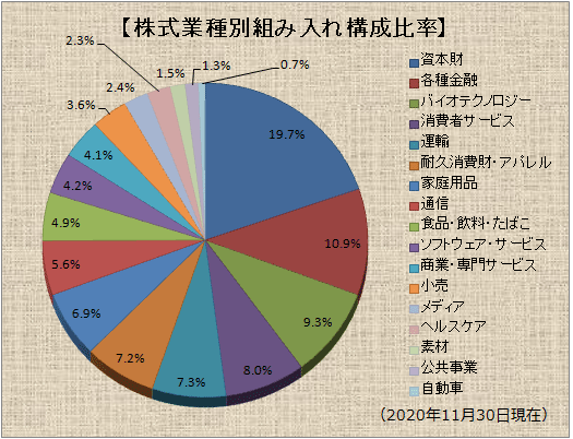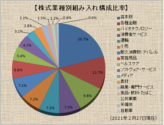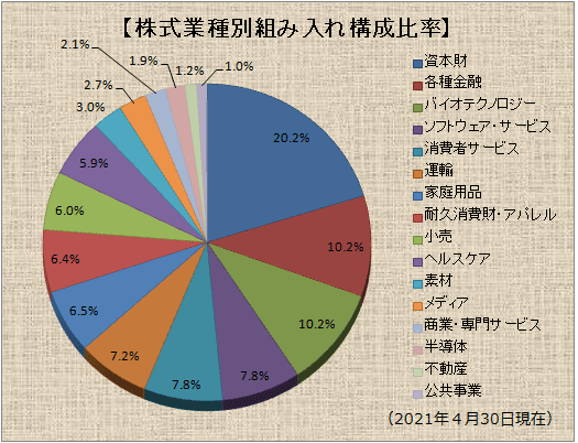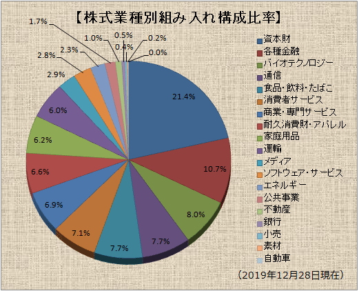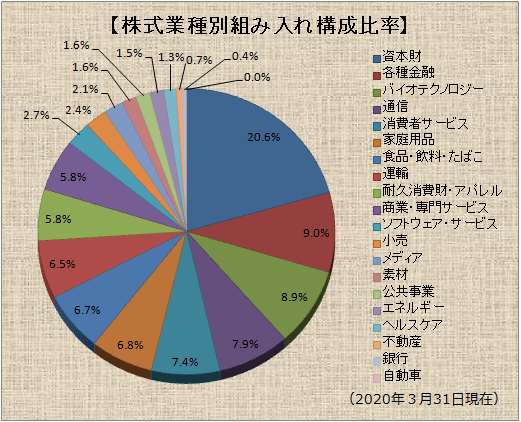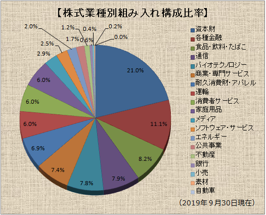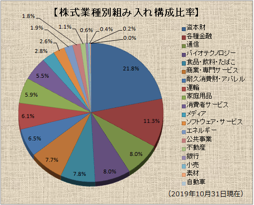 株式の業種別の構成比率は、資本財セクターが突出していますが、資本財が大好物なのでついつい偏りがちです。株式選定時に多少参考にしてなるべく分散を心掛けています。
