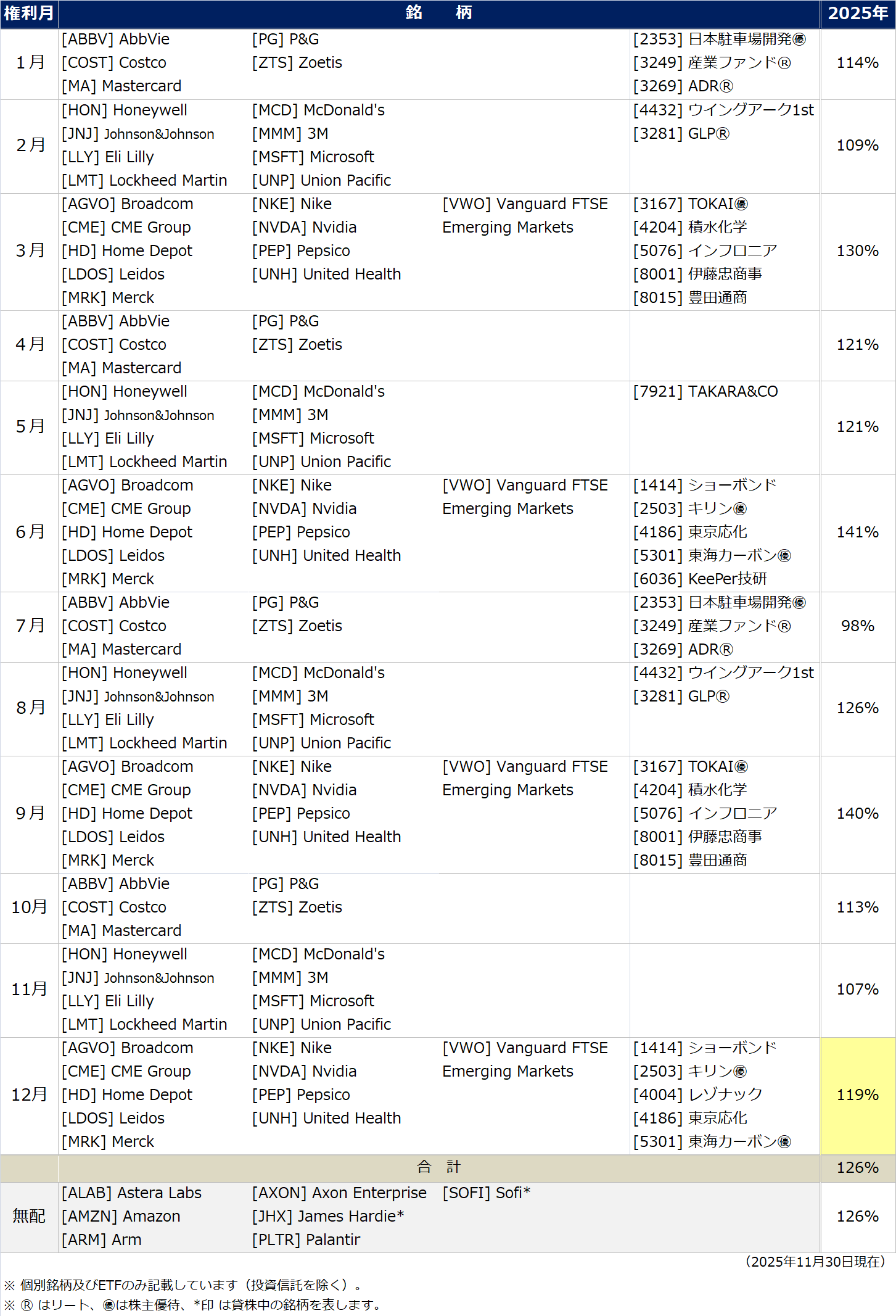 - 株価成長と配当の両面でバランスが取れた銘柄をコア銘柄に